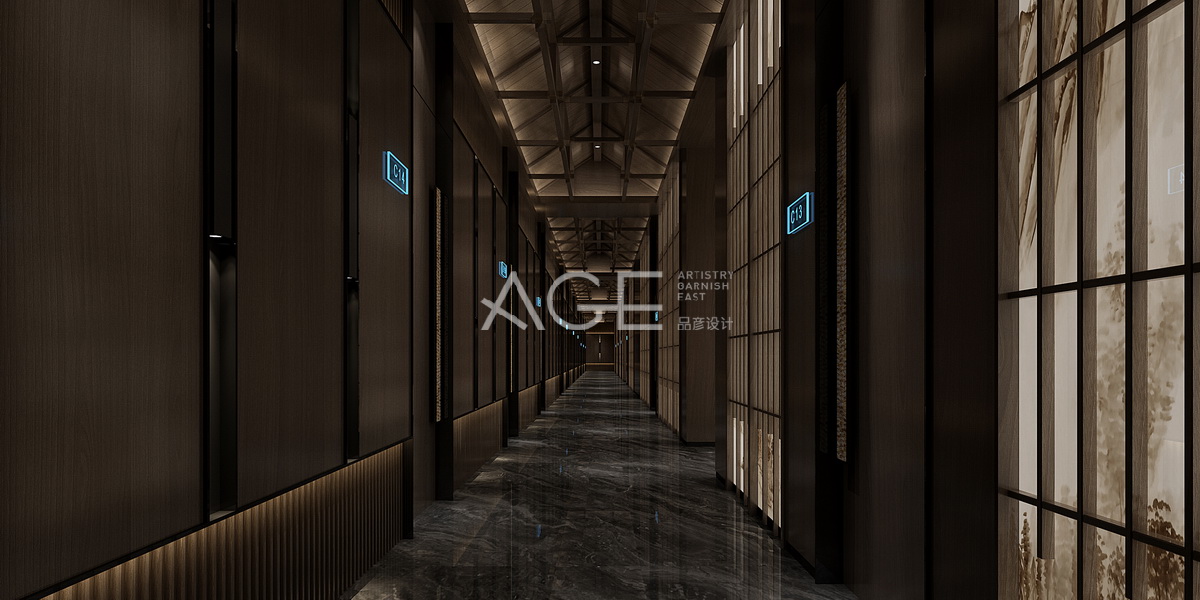 走廊整體設(shè)計(jì)彰顯出一種輕奢大氣的現(xiàn)代簡(jiǎn)約風(fēng)格,方形與線條搭配有序,棕、灰、黑三色基調(diào),擋不住的高貴直接映入眼簾,漂亮的條紋大理石地板與凹造型木條元素的天花板形成相呼應(yīng)設(shè)計(jì),通道兩邊的墻體設(shè)計(jì)各顯千秋,都有方格和線條的元素,又獨(dú)行特立。