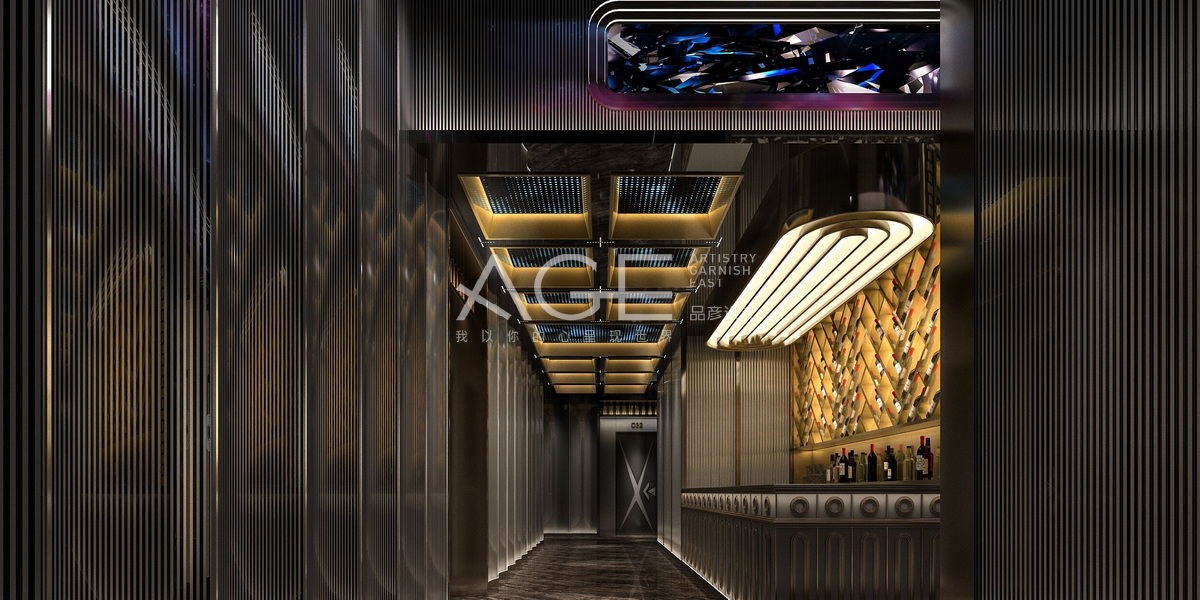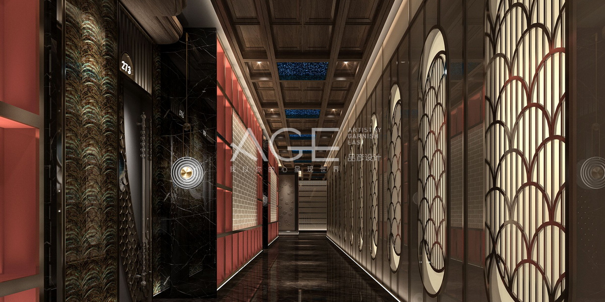 商務KTV走廊一,色彩搭配盡顯華貴之氣,一眼望去,一道亮麗的風景線。整體色調柔和,更顯瑰麗迷人,凸顯金屬材質帶出來的精致與細膩。燈光和色調巧妙搭配,突出追求的音樂效果和動感的視覺效果。商務KTV走廊二,以暗色基點為主,盡顯神秘又不失立體感,色彩與光影的設計,凸顯細節的雕琢,加入創造性解構人文素材,更讓讓藝術性與功能性有了高度的統一。