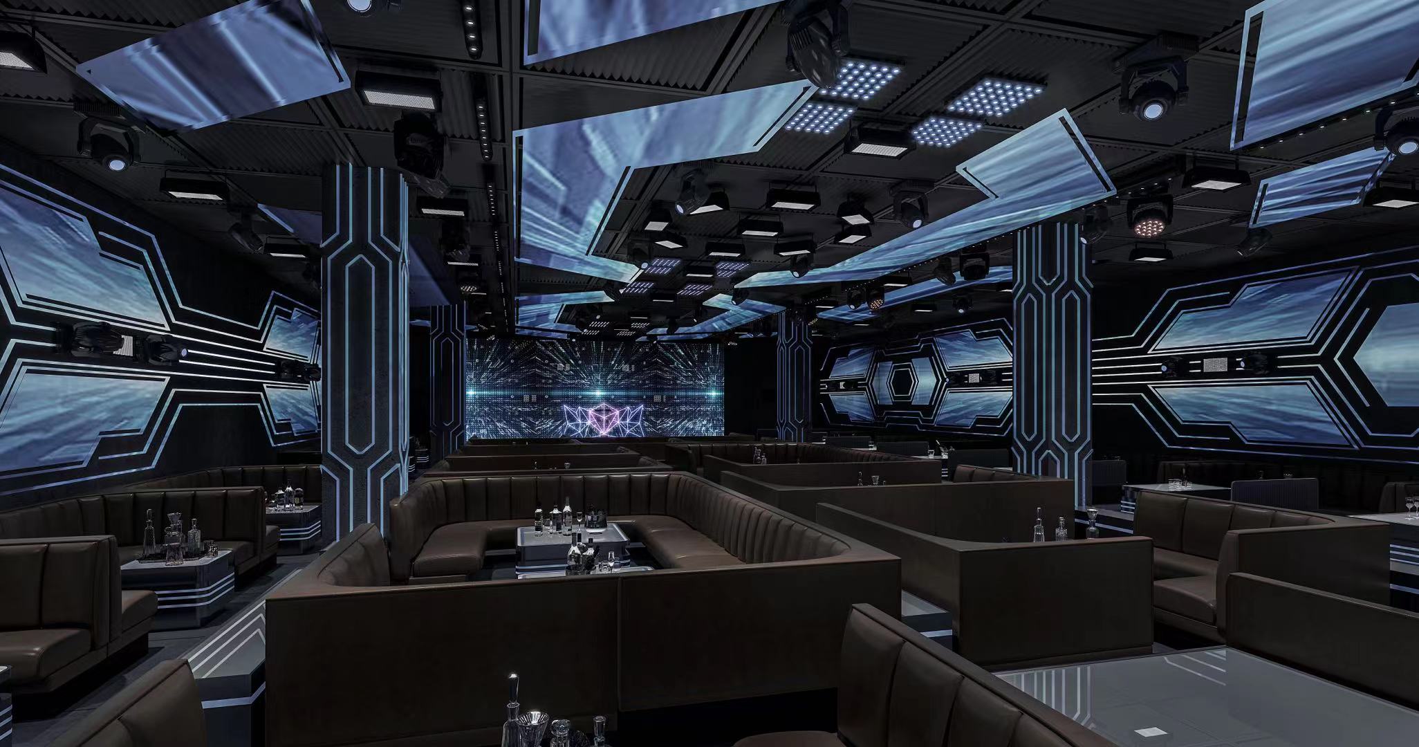 本案珠海唐潮派對酒吧,設(shè)計(jì)師用縱橫的線條交錯,藍(lán)白為主的霓虹色調(diào),勾勒出了一個如夢似幻的集派對酒吧和派對KTV為一體的星際穿越空間。他以整體角度出發(fā),輔以細(xì)節(jié)處點(diǎn)綴,使得整個設(shè)計(jì)交融一體、相輔相成,讓踏足于此的消費(fèi)者能全身心地沉浸在一個如夢似幻的空間內(nèi),徹底放松自己。