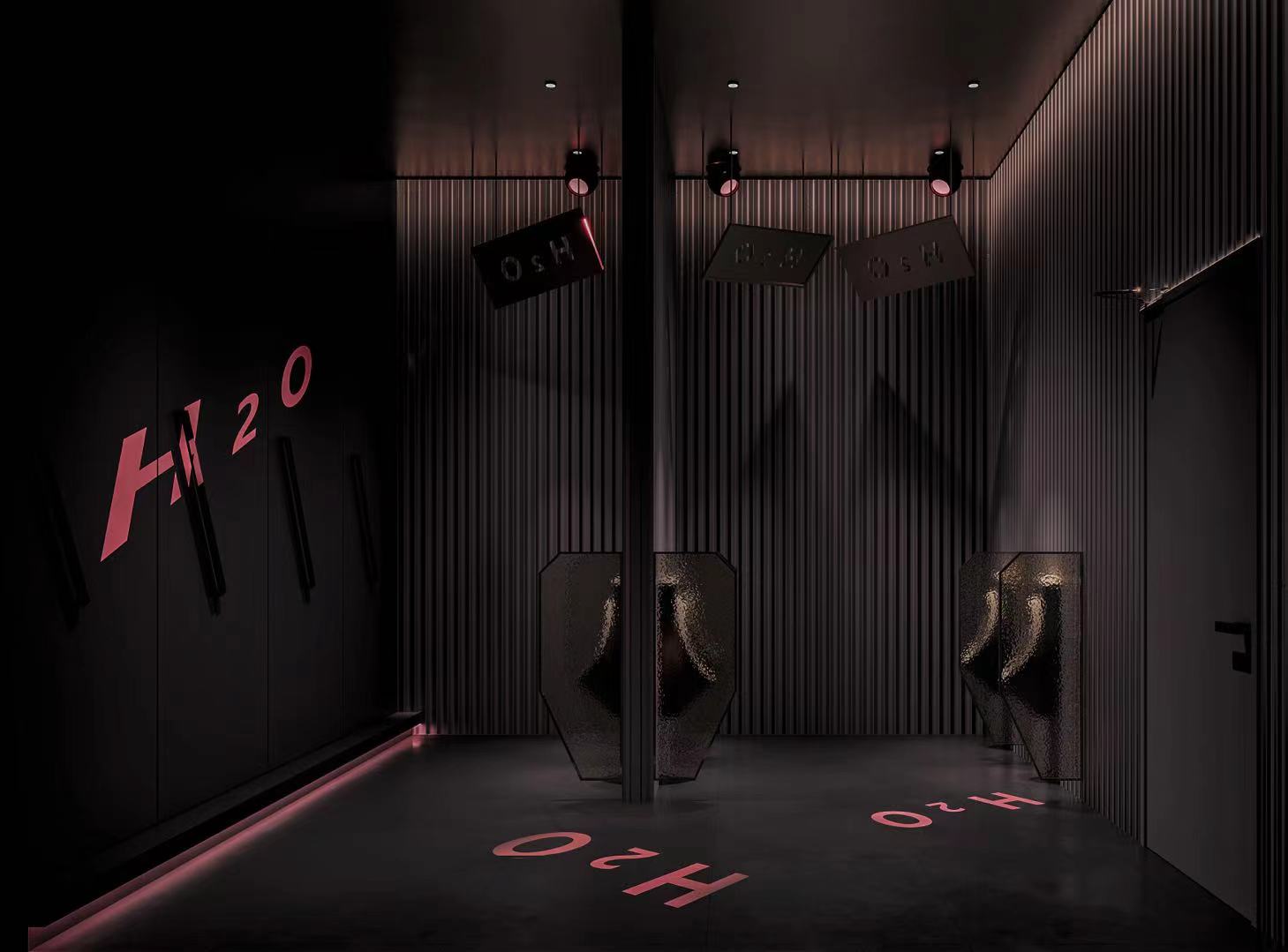 細(xì)節(jié)之處方顯真章,好的酒吧設(shè)計(jì)公司和KTV設(shè)計(jì)公司往往不會忽略掉細(xì)微不受重視之處,因?yàn)橹挥型暾桓盍训脑O(shè)計(jì)才能稱得上好設(shè)計(jì),就譬如本案衛(wèi)生間以及衛(wèi)生間休息室的設(shè)計(jì),采用了極簡的墻面設(shè)計(jì)搭配上畫龍點(diǎn)睛般的燈光效應(yīng),化腐朽為神奇,將兩者與酒吧的整體設(shè)計(jì)調(diào)性充分融合,讓消費(fèi)者從酒吧主體區(qū)域走出后有從一處夢幻走向另一處夢幻的連貫感覺。