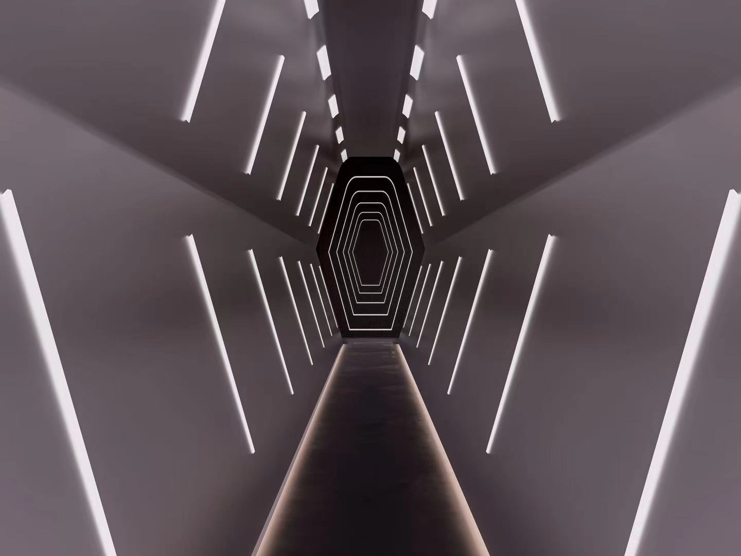 設(shè)計(jì)師以簡單規(guī)整的幾何圖形設(shè)計(jì)排列,輔以整齊有序的燈光、簡約的金屬質(zhì)感建材,化繁為簡,極大提高了走道的縱深效果,讓消費(fèi)者行走其中就好像是置身于穿梭隧道之中,有種步步穿越移形的奇異之感。